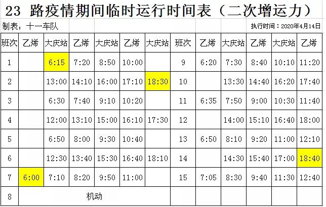 乘公交出行的市民 注意了 油城公交、交投公交发布信息 两条线路暂时停运 一条线路减少班次 两条线路增加班次 详情一起看下吧 明天起 增加23路公交线路 早高峰运行班次 调整首班发车时间 车次表如下 ↓↓↓ 快6路公交和32路公交
