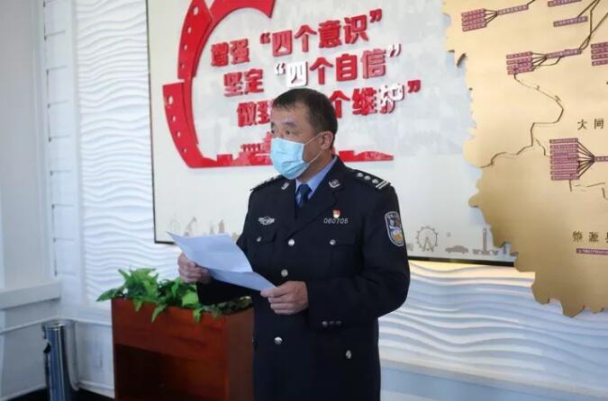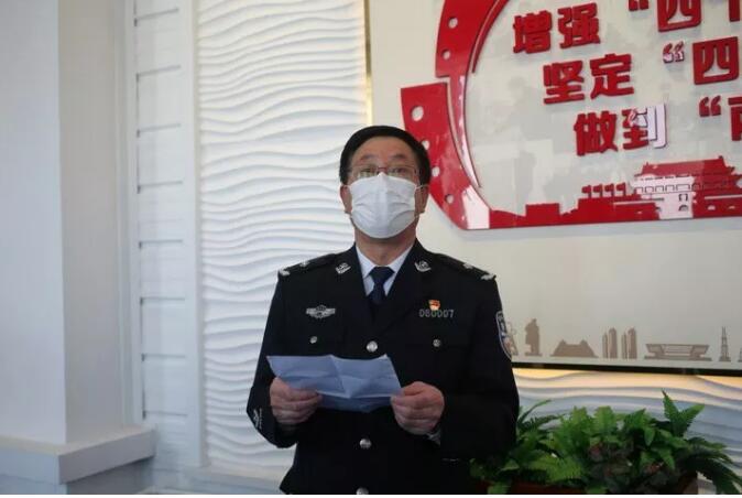 2月14日下午,大庆市公安局在公安科技大厦举行“火线入党”宣誓仪式。市公安局党委委员、政治部主任刘国富参加仪式并讲话。仪式由机关党委书记徐东主持。
