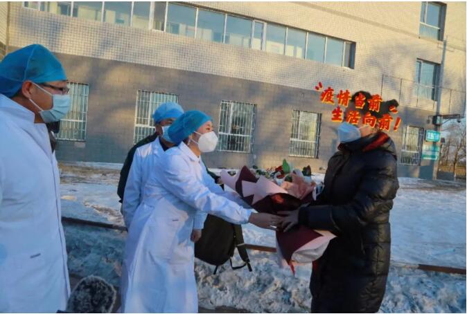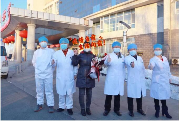患者章某,女,44岁,黑龙江省肇源县人,2020年2月2日确诊为新型冠状病毒肺炎,在大庆市第二医院住院隔离治疗,经过医护人员的精心治疗和护理,患者已平温三天以上,临床症状明显改善,肺部影像学显示明显吸收,连续两次2019-nCOV核酸检测阴性,符合《新型冠状病毒肺炎诊疗方案》(试行第五版 修正版)解除隔离出院标准,今日出院。