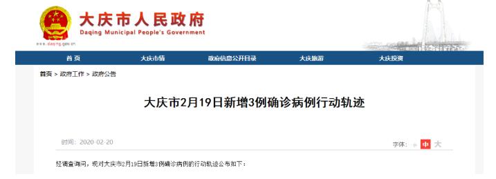 经调查询问,现对大庆市2月19日新增3例确诊病例的行动轨迹公布如下: