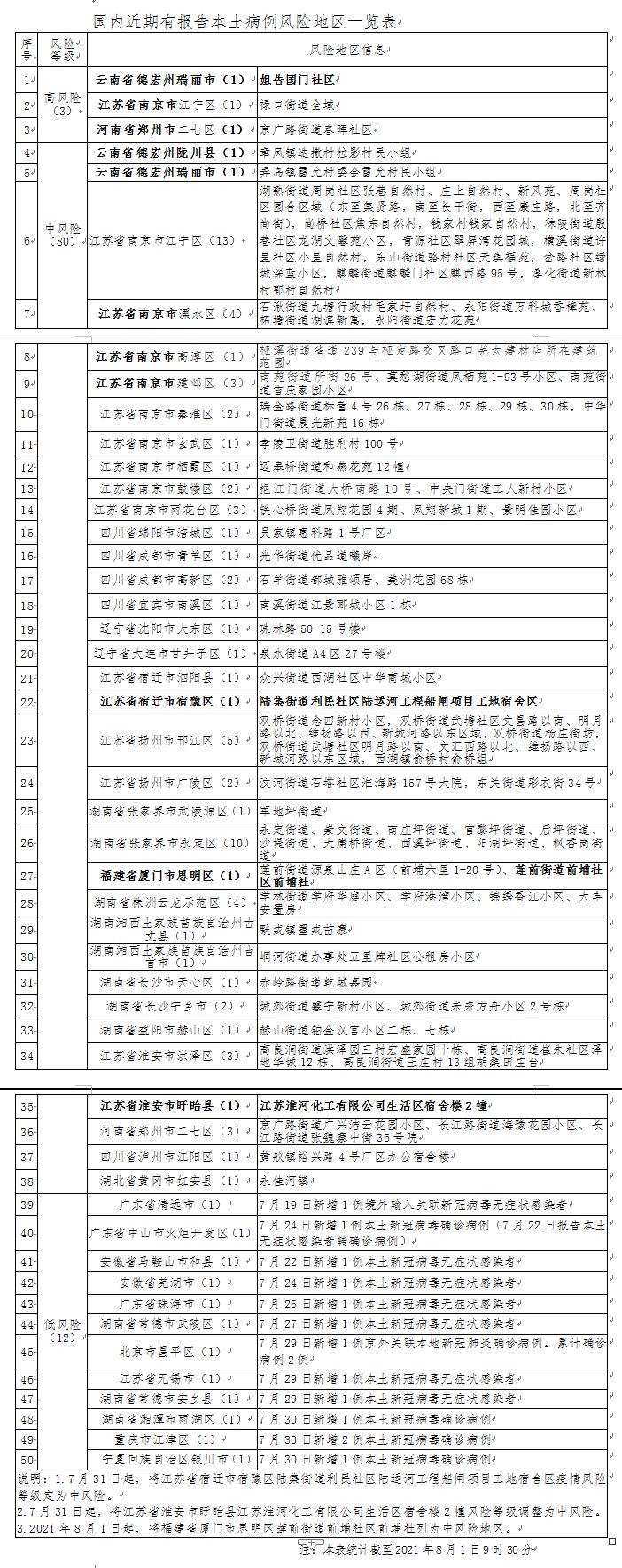 2021年8月1日起,将福建省厦门市思明区莲前街道前埔社区前埔社列为中风险地区。