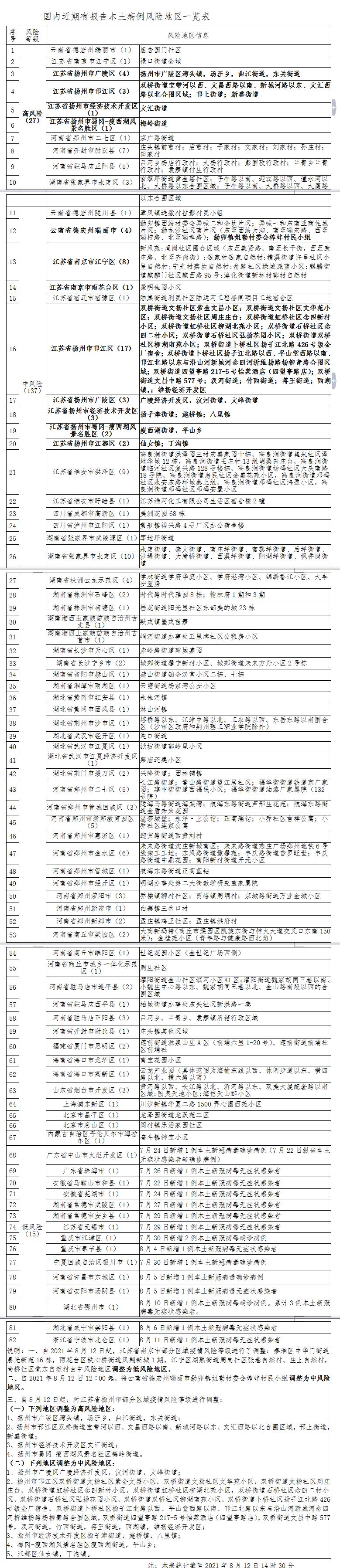 云南省瑞丽市新增1处中风险地区;江苏省扬州市新增4处高风险地区,5处中风险地区,其他地区风险等级不变。