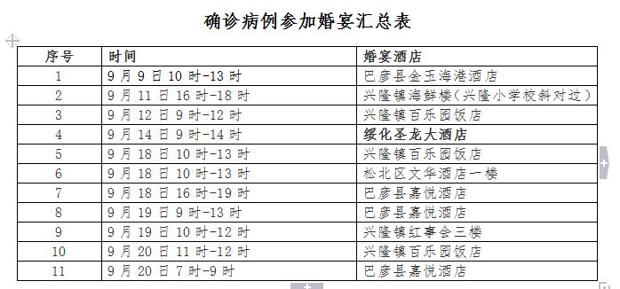 9月20日,巴彦县兴隆林业局安民家园,巴彦县兴隆镇恒隆花园楼下废品收购点,巴彦县兴隆林业局安民新城,巴彦县兴隆医药二商店,巴彦县兴隆林业局鑫淼果蔬粮油,巴彦县兴隆林业局兴林大药房,巴彦县兴隆林业局和盛食府。