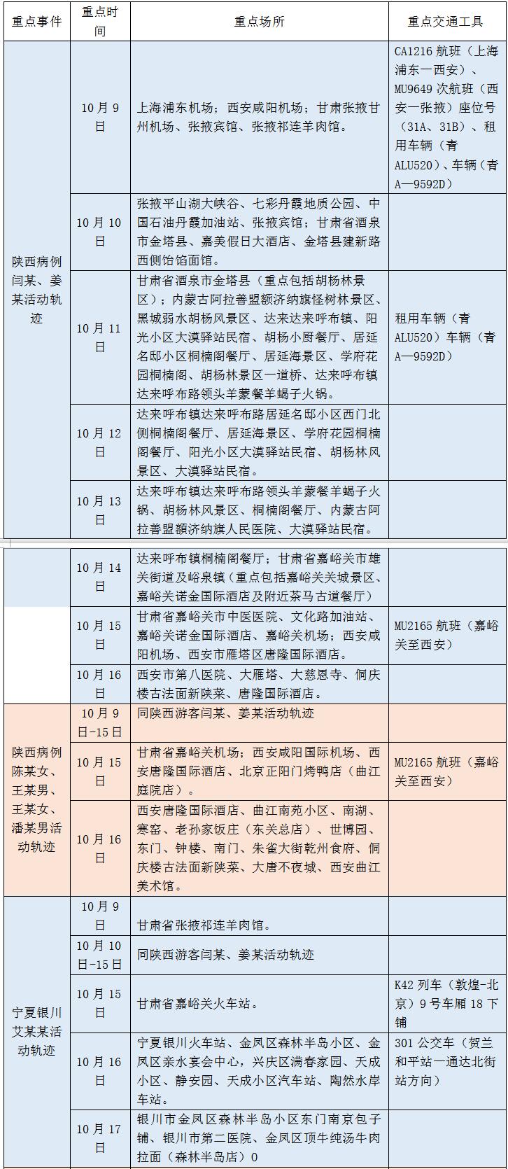 近日,陕西省西安市、甘肃兰州市、贵州遵义市、湖南长沙市、内蒙古阿拉善盟、宁夏银川市、河北邢台市等地通报多例游客及密切接触者核酸检测阳性,现将西北旅游阳性人员重点轨迹汇总如下: