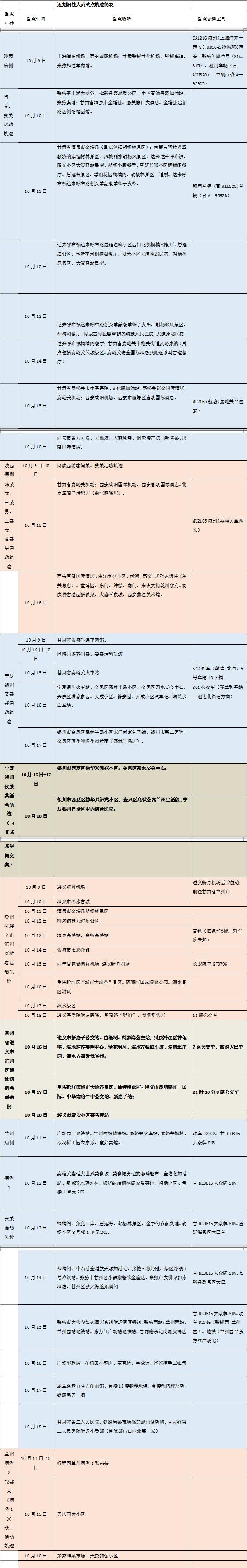 重点时间、重点交通工具及重点场所如下表:
