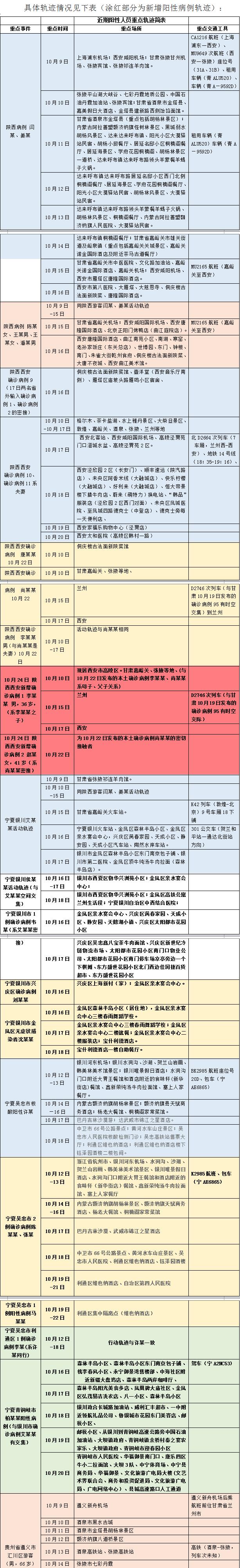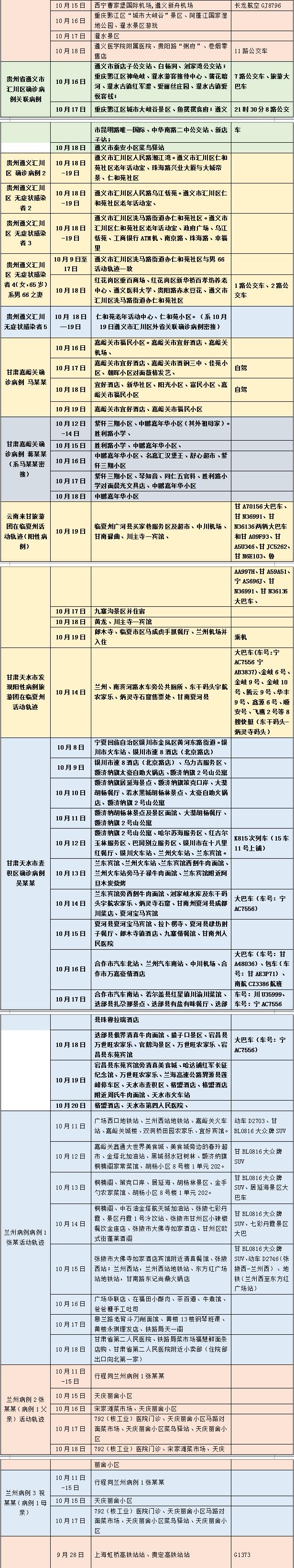 10月24日,7省区10地公布20名阳性感染者轨迹,涉及陕西西安,甘肃兰州市、张掖,湖南长沙市,北京海淀区、丰台、昌平区,河北石家庄,内蒙古呼和浩特市,四川省自贡市。