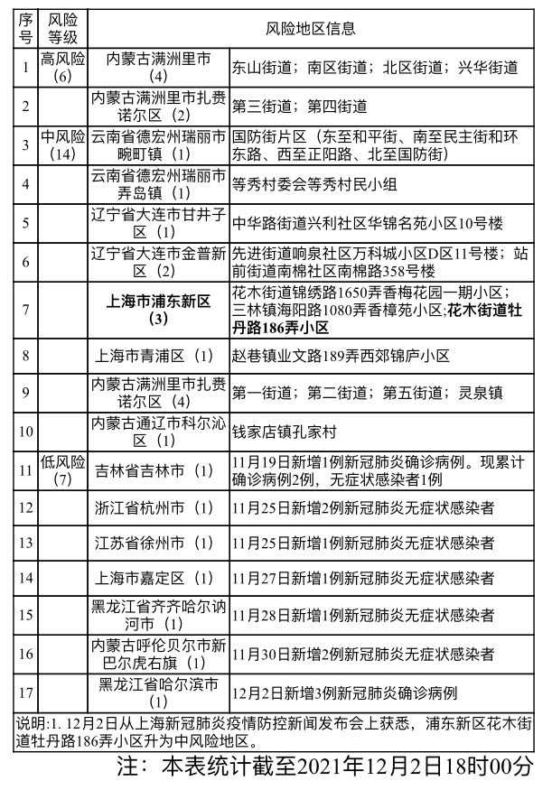 12月2日,据上海新冠肺炎疫情防控新闻发布会消息,浦东新区花木街道牡丹路186弄小区升为中风险地区。