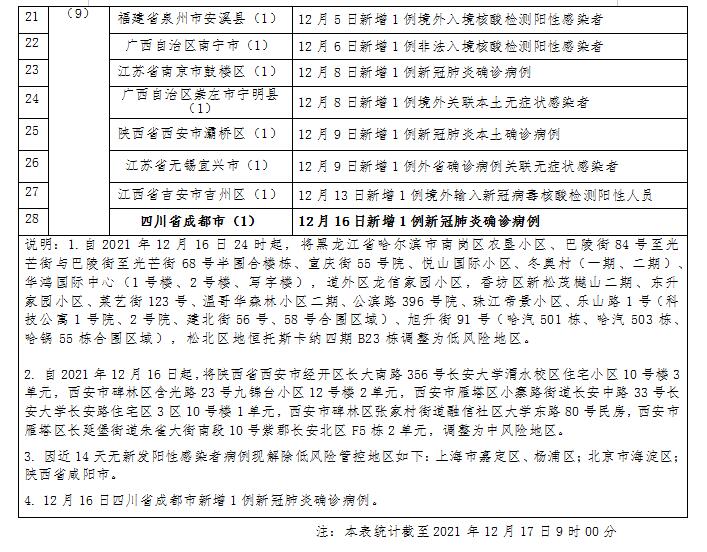 12月16日四川省成都市新增1例新冠肺炎确诊病例。