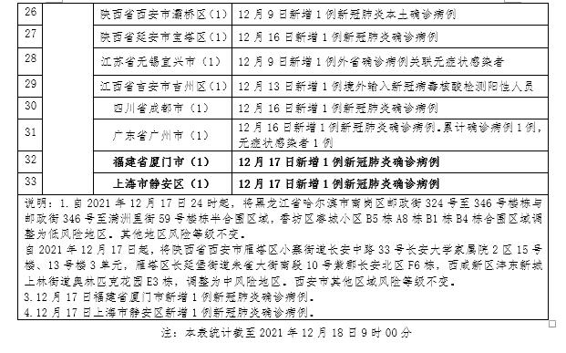 12月17日,福建省厦门市新增1例新冠肺炎确诊病例。