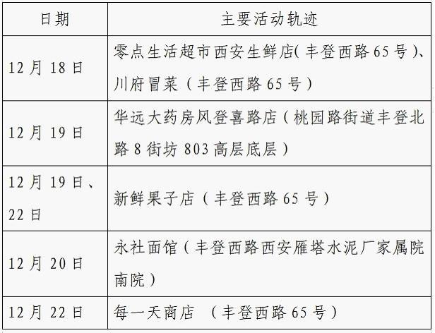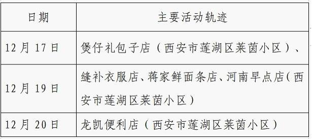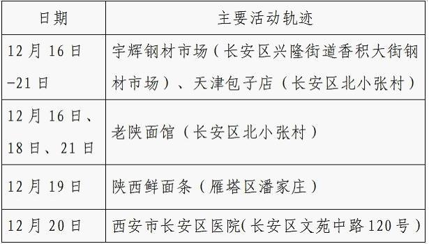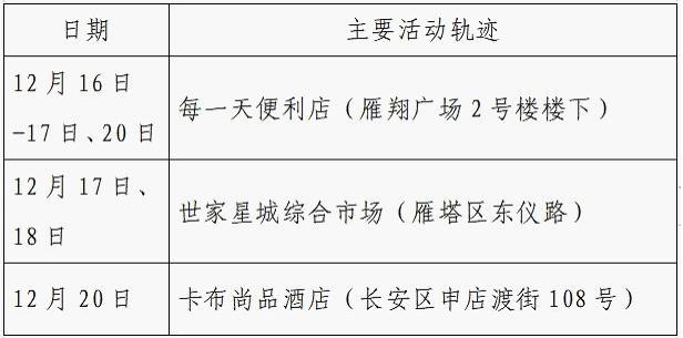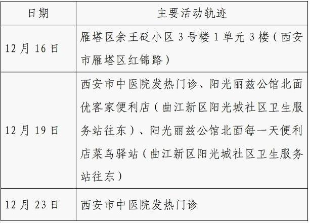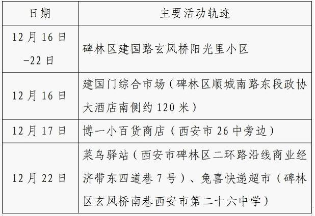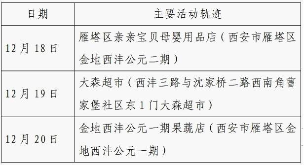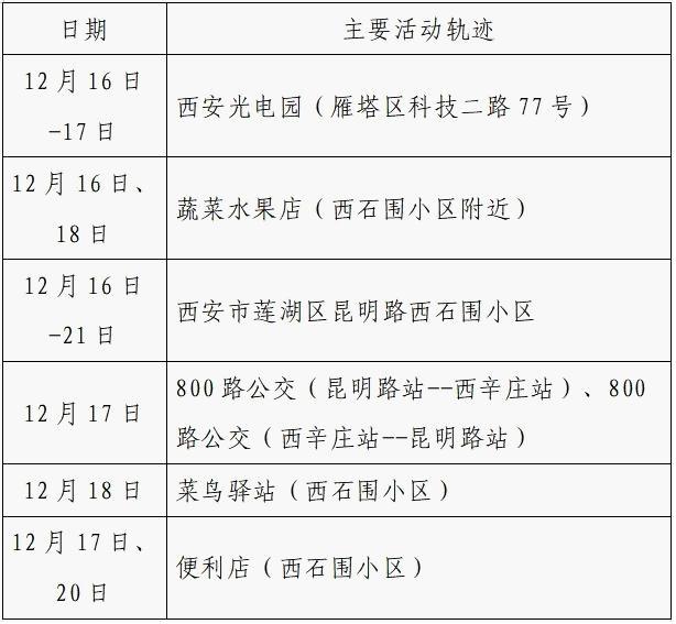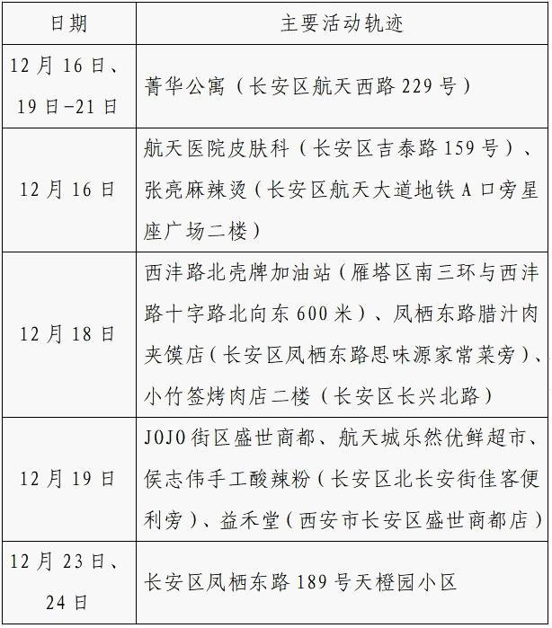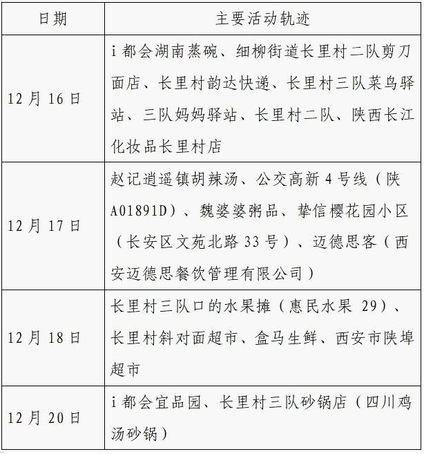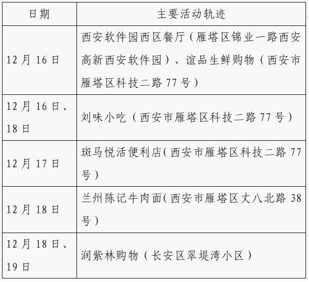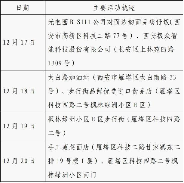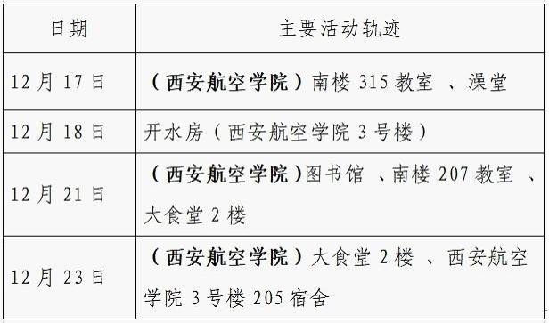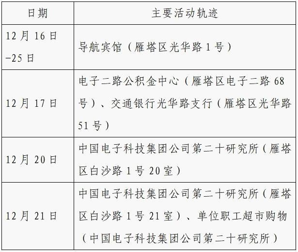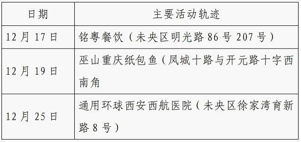12月25日0-24时,西安市新增的155例确诊病例的公共场所活动轨迹信息如下: