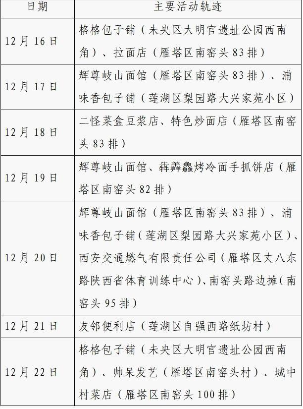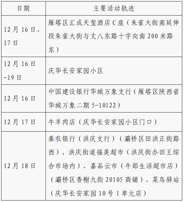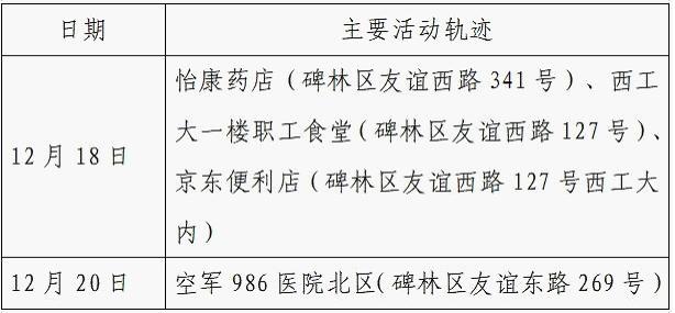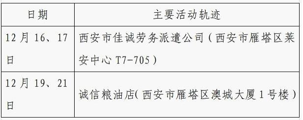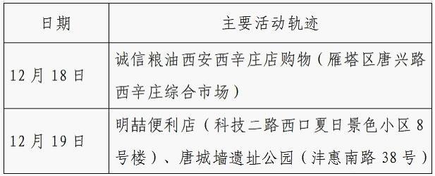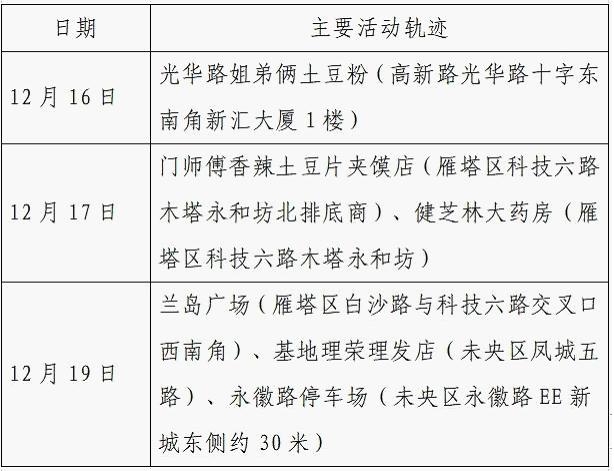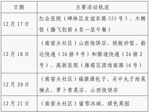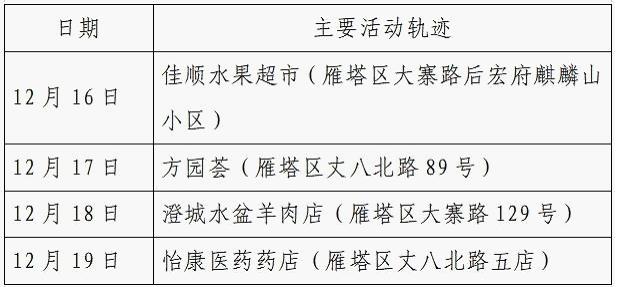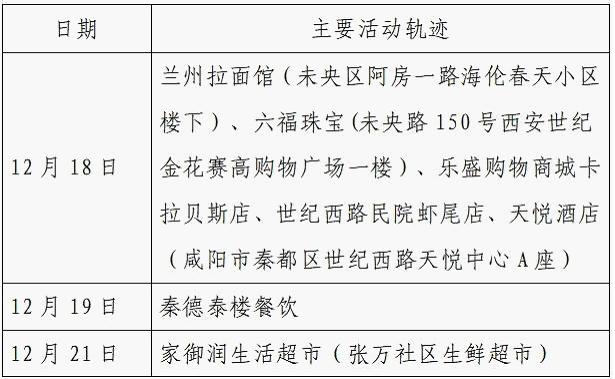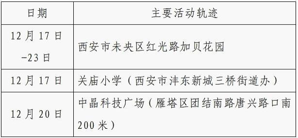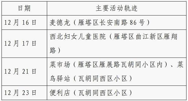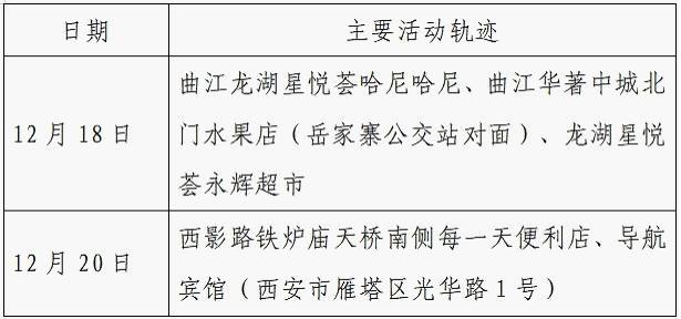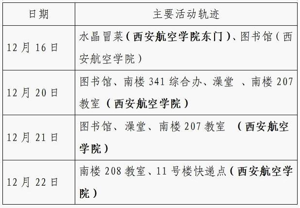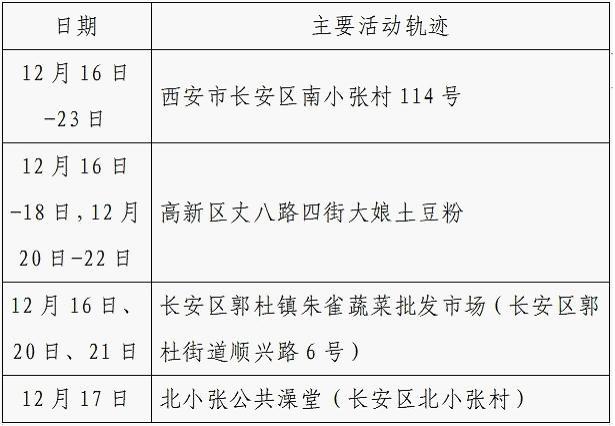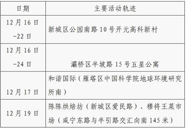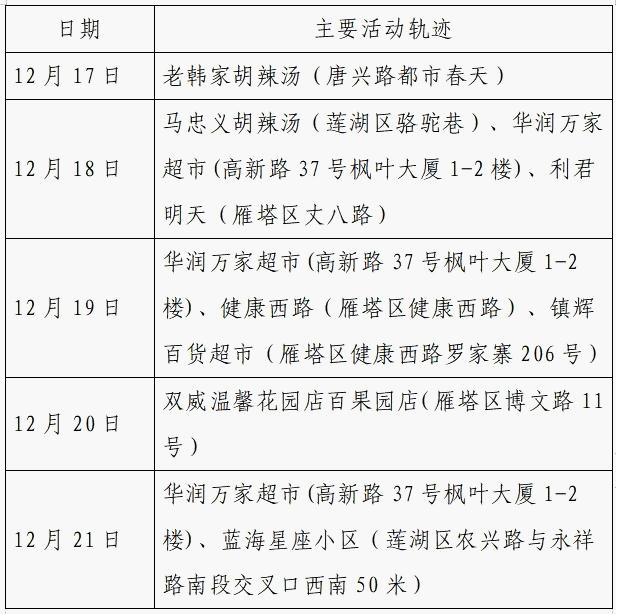 12月25日0-24时,西安市新增的155例确诊病例的公共场所活动轨迹信息如下: