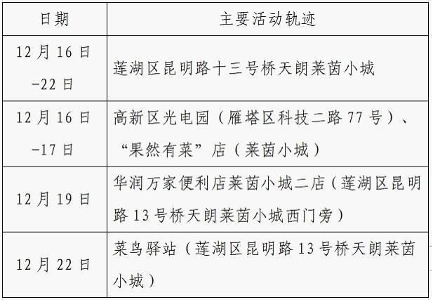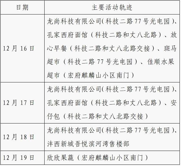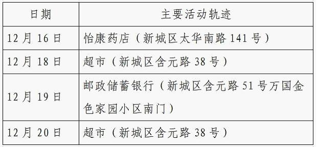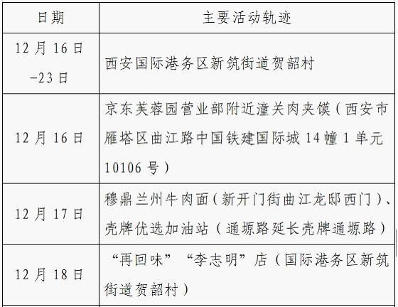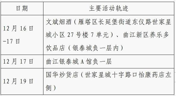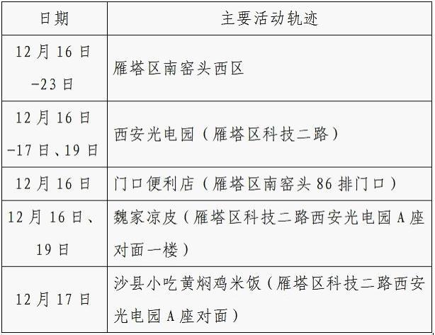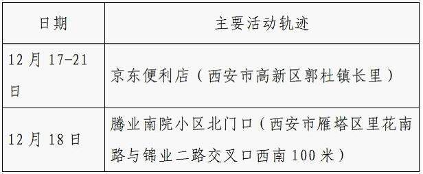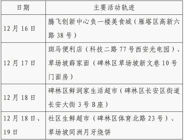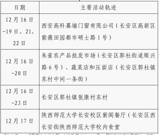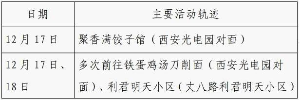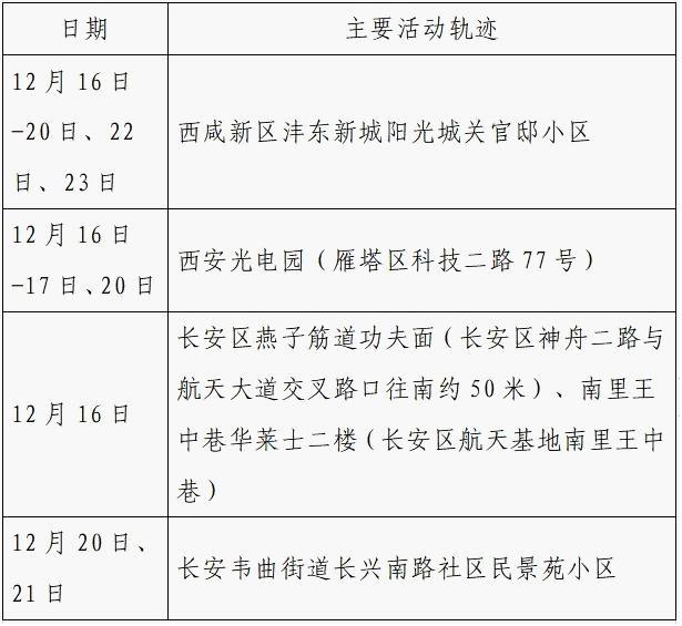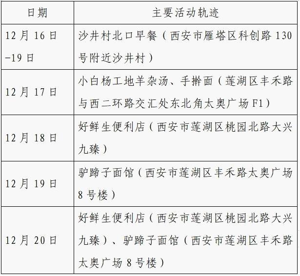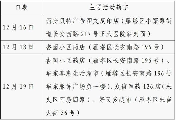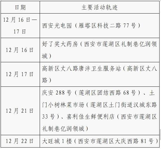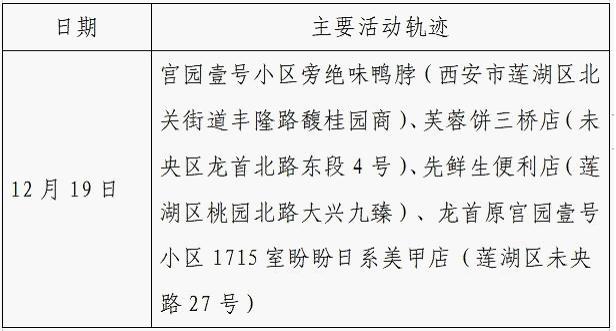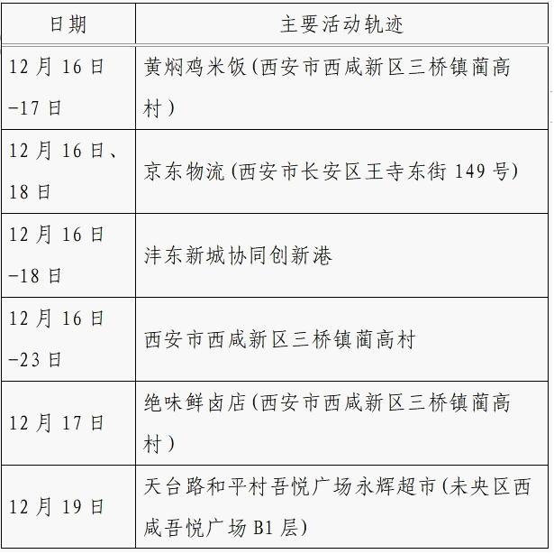 12月25日0-24时,西安市新增的155例确诊病例的公共场所活动轨迹信息如下: