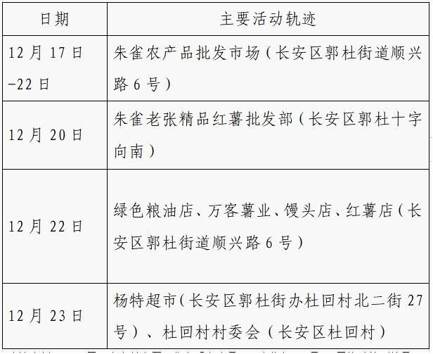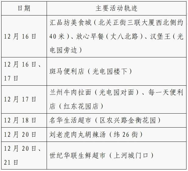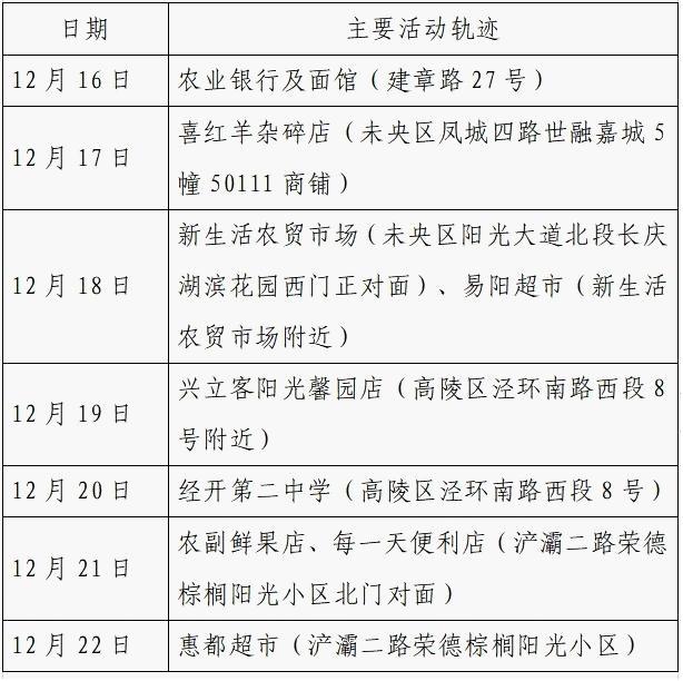 作为重点人员,12月21日被隔离。12月24日核酸检测结果阳性,轻型。无公共场所活动轨迹。