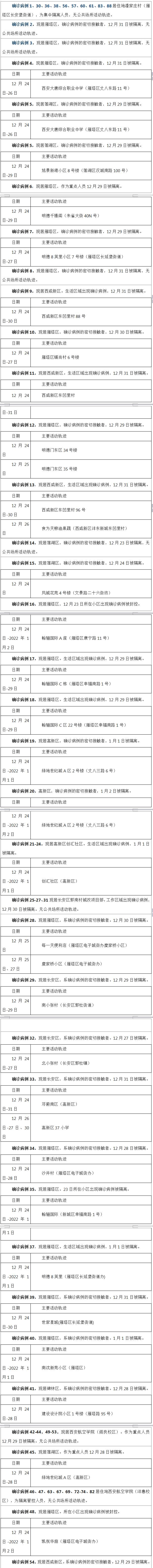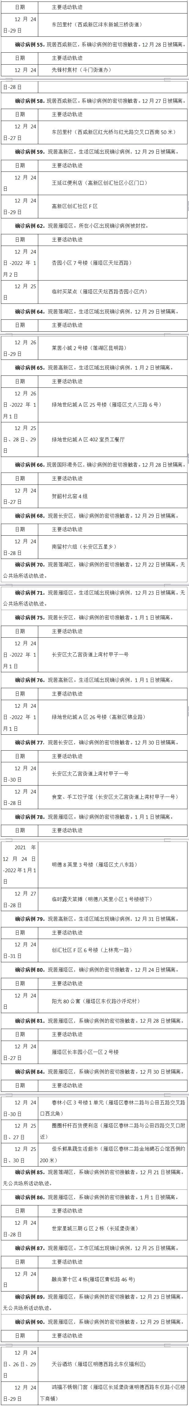 1月2日0-24时,陕西省西安市新增的90例本土确诊病例的公共场所活动轨迹信息如下: