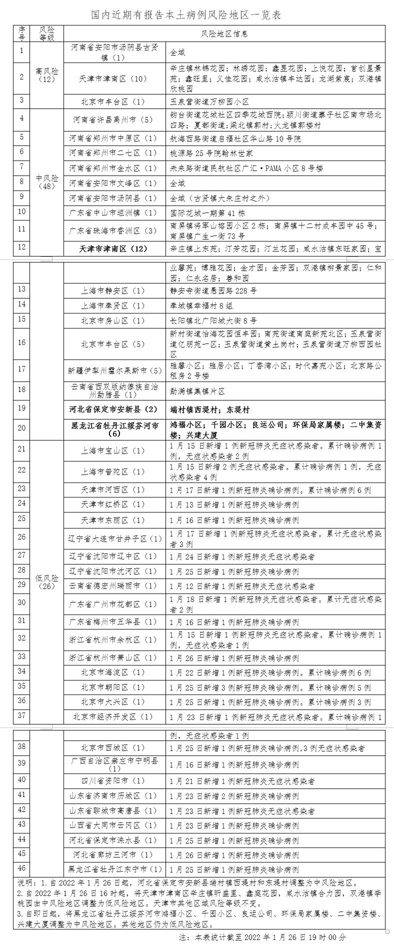 自2022年1月26日起,河北省保定市安新县端村镇西堤村和东堤村调整为中风险地区。