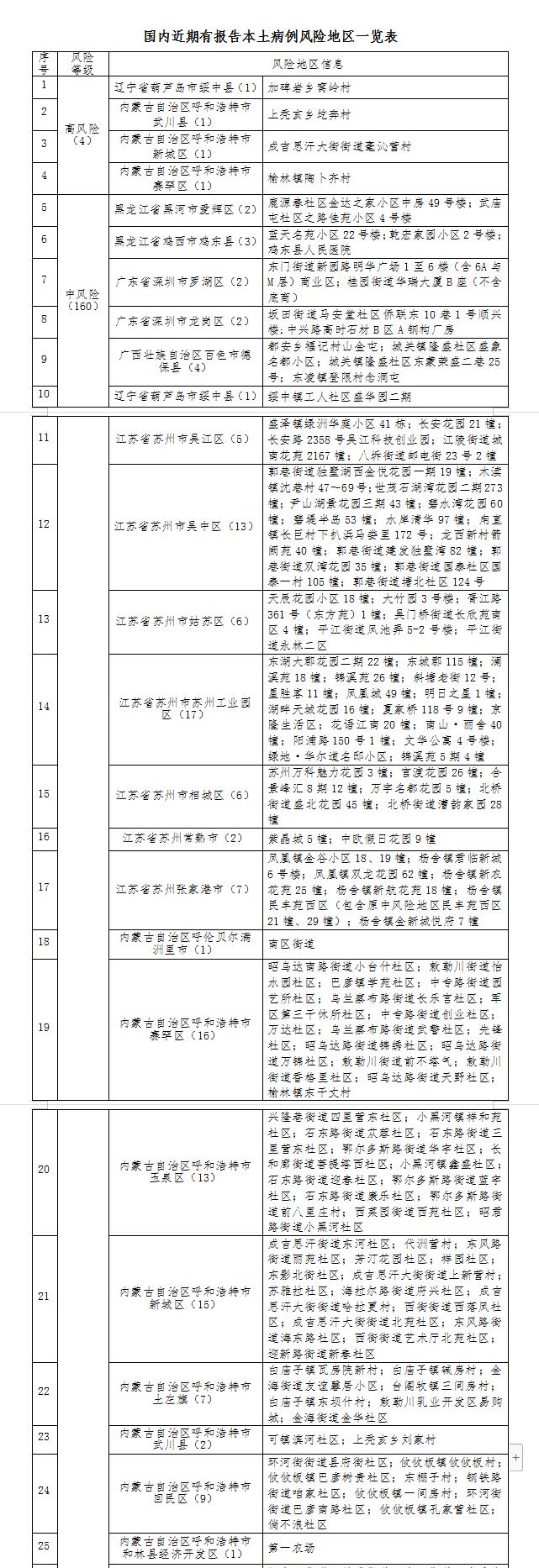 目前,全国现有高风险地区4个,中风险地区160个。