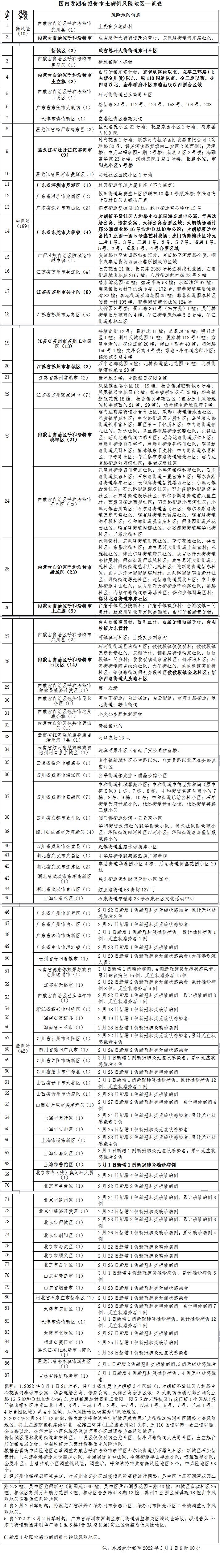 3、自3月2日零时起,将黑龙江省牡丹江绥芬河市长春小区、绥芬河市阳光小区7号楼调整为中风险地区。