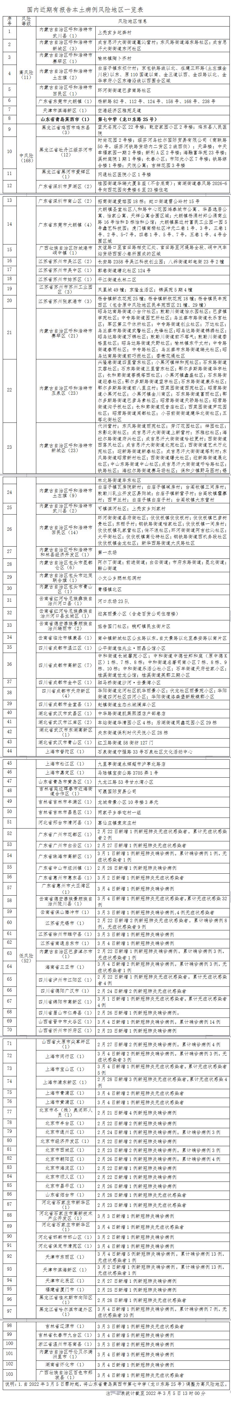 自2022年3月5日零时起,山东省青岛莱西市第七中学(龙口东路25号)调整为高风险地区。