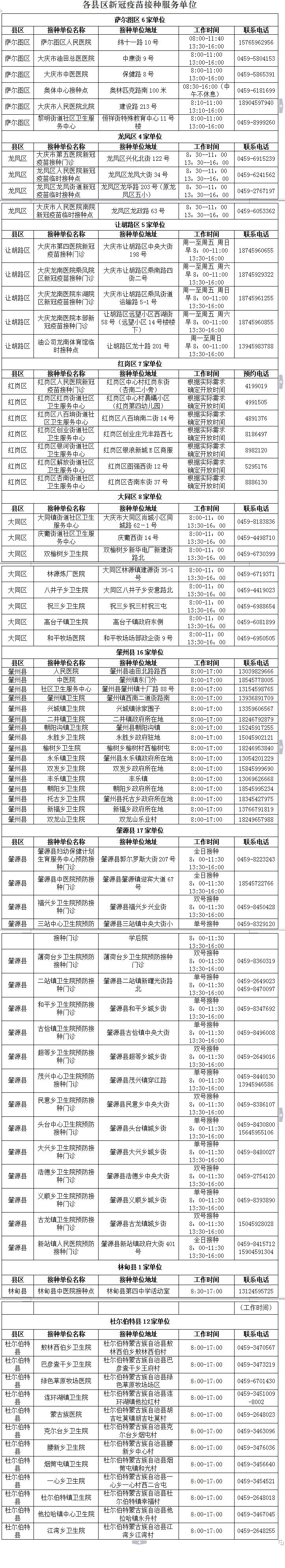 大庆市各县区疫苗接种单位一览表