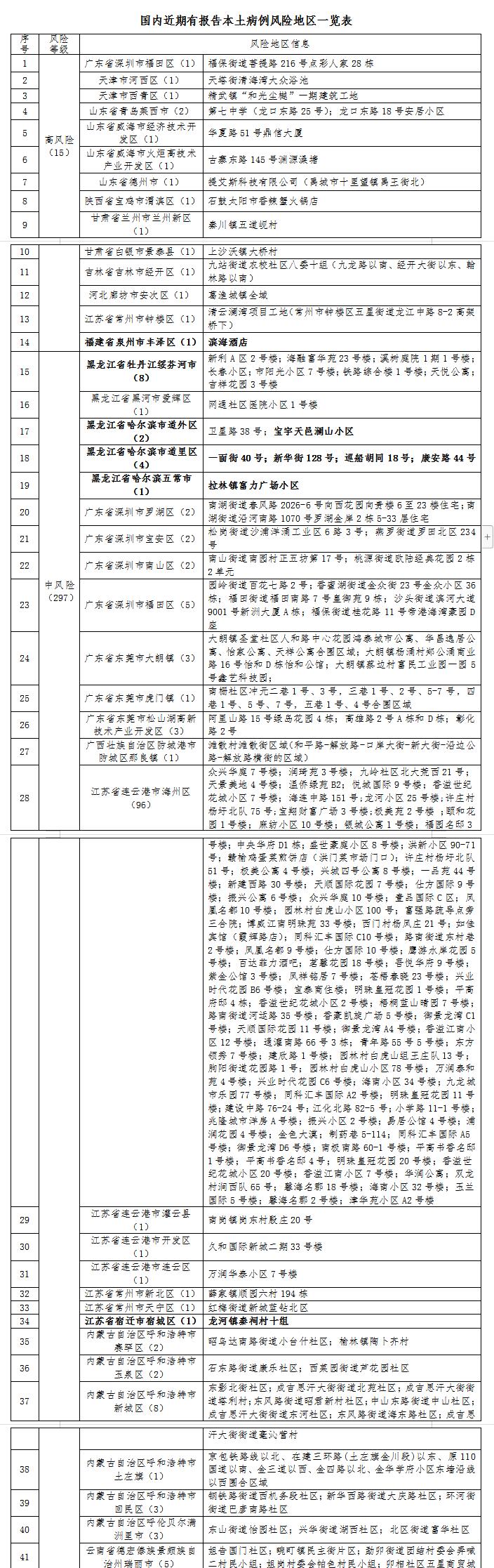 3.自2022年3月14日起,福建泉州丰泽区滨海酒店列为高风险地区,丰泽街道丰泽新村88号列为中风险地区。