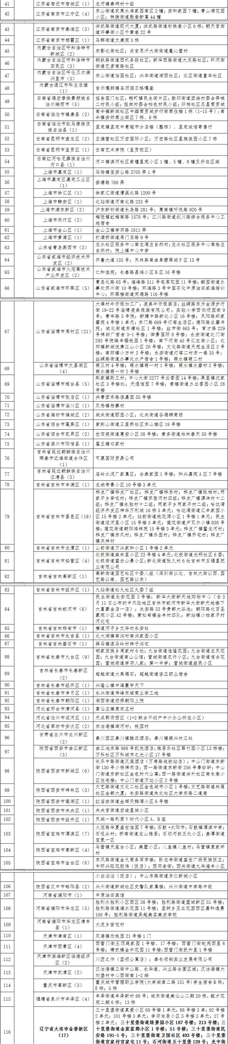 经辽宁省总指挥部同意,大连市将辽宁省大连市金普新区三十里堡街道绿景园小区187号楼、213号楼,三十里堡街道金宸蓝郡小区1号楼、51号楼,三十里堡街道民安路191-1号,三十里堡街道卫国社区493号楼,三十里堡街道宫家村宫家屯11号,石河街道五十里堡139号,光中街道海天新界小区18号楼1单元,光中街道育才街28号楼2单元,大魏家镇大魏家村大连泰和构件有限公司宿舍划定为中风险地区