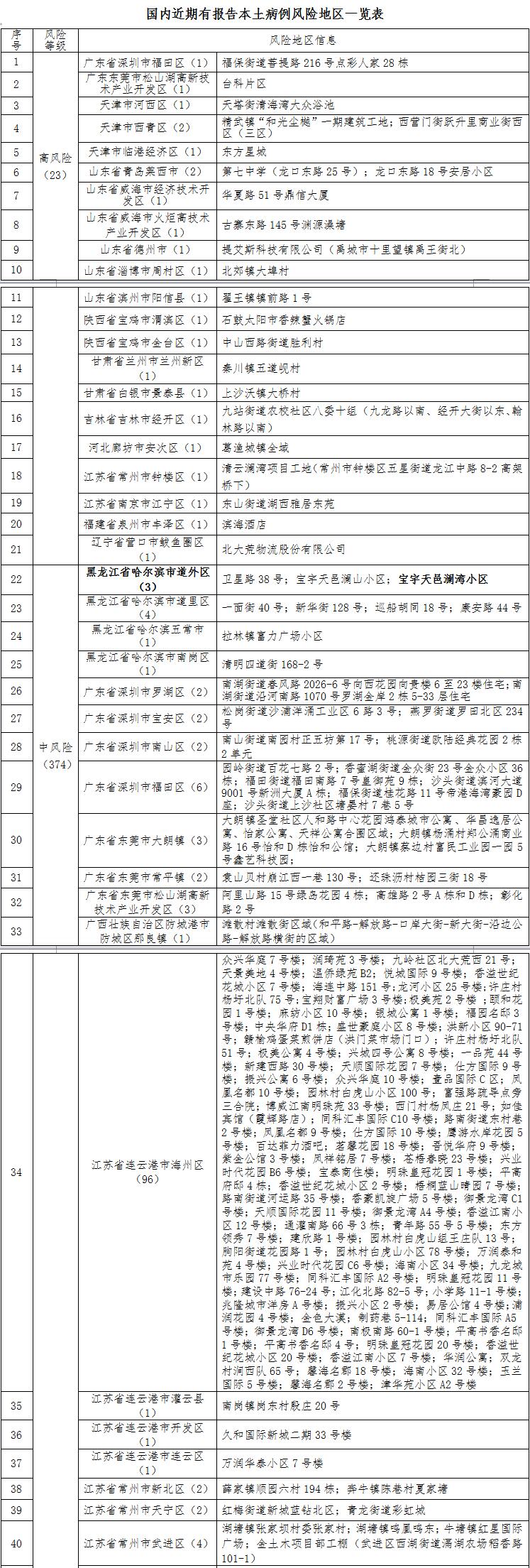 一、非必要勿前往黑龙江省哈尔滨道外区宝宇天邑澜湾小区、辽宁省大连市金普新区三十里堡街道绿景园小区187号楼、213号楼、三十里堡街道金宸蓝郡小区1号楼、51号楼、三十里堡街道民安路191-1号、三十里堡街道卫国社区493号楼、三十里堡街道宫家村宫家屯11号、石河街道五十里堡139号、光中街道海天新界小区18号楼1单元、光中街道育才街28号楼2单元、大魏家镇大魏家村大连泰和构件有限公司宿舍、有病例发生地区及国内已公布的高、中风险地区。如必须前往,需提前向社区、村屯或属地疾控中心报备,同时做好个人防护。