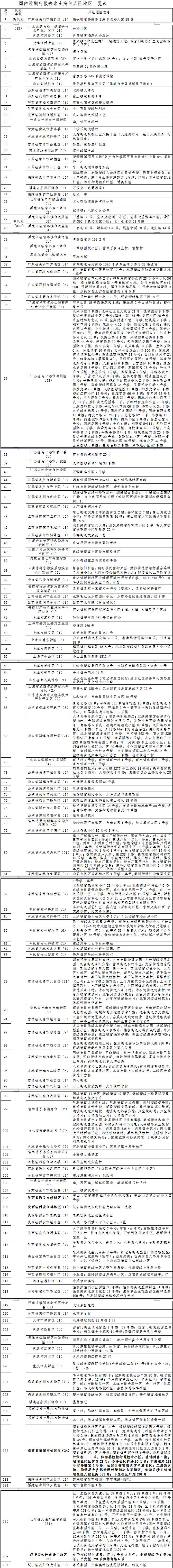 目前,全国现有高风险地区33个,中风险地区540个。