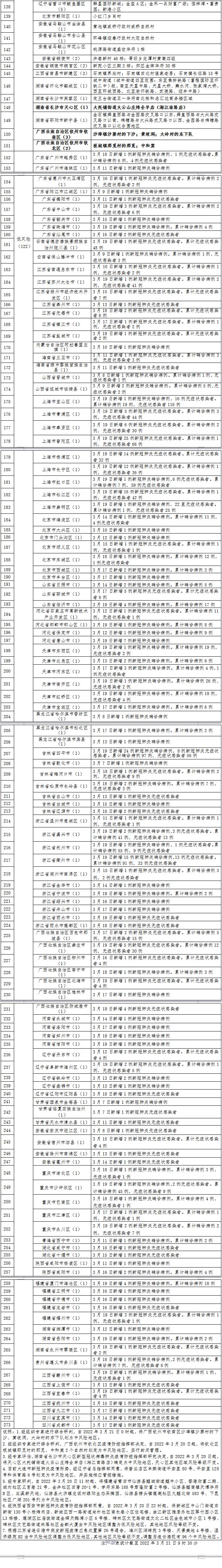 4.经专家研判,自2022年3月20日11时起,将福建省莆田市仙游县鲤城街道鲤中小区、香港财富二期、城内社区三宫巷21号、金井社区田厝20-1号、学府东路188号君隆财富2号楼,仙游县鲤南镇天博华府B区、兰溪新天地,仙游县大济镇龙坂村绿阳生态采摘园,仙游县榜头镇莲墘社区九鲤北街583号、下昆社区广湖201号列为中风险地区。