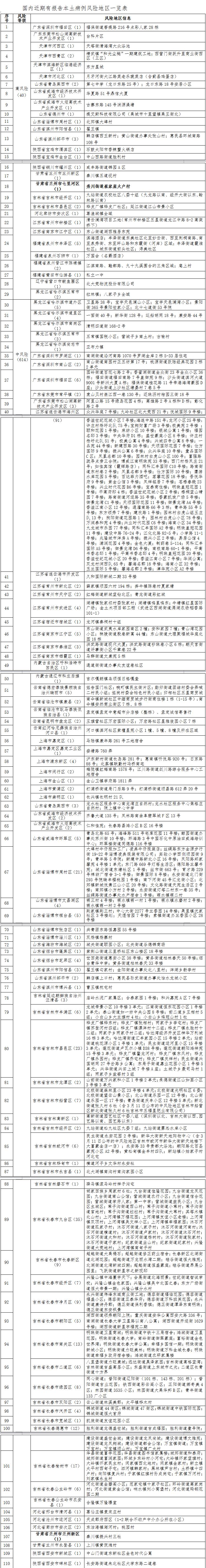 目前,全国现有高风险地区40个,中风险地区614个。