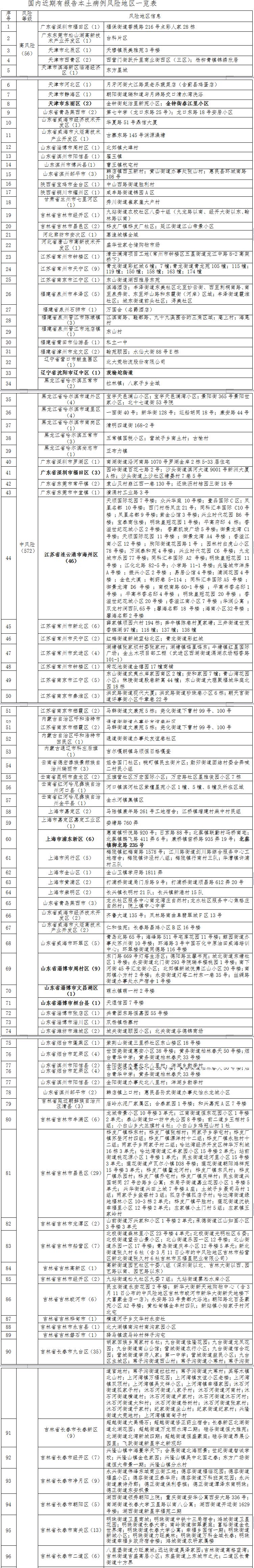 2.自3月23日起,辽宁省沈阳市辽中区茨榆坨街道调整为高风险地区。