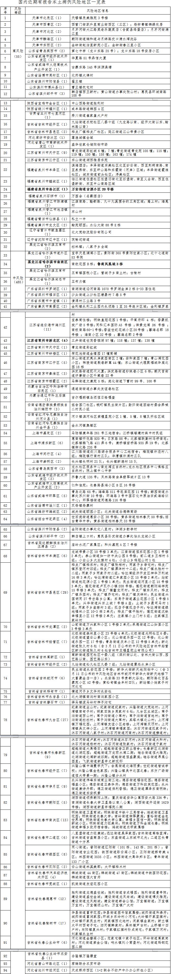 目前,全国现有高风险地区55个,中风险地区485个。
