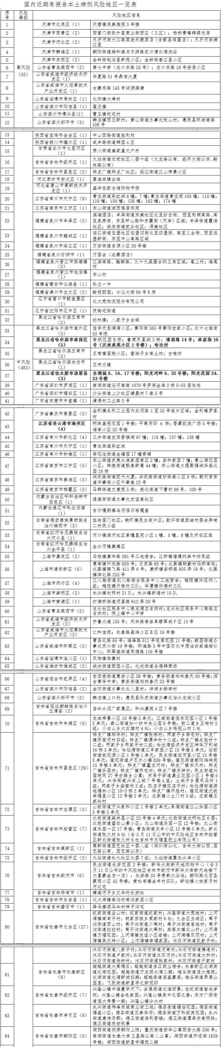 自2022年3月29日10时起,黑龙江省哈尔滨市南岗区清滨路14号、林家街10号(汉林美苑小区1号楼)、哈达村调整为中风险地区。