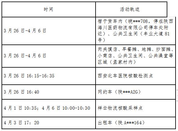 确诊病例3、5,4月6日从外省自驾返回西安,在高速收费站进行抗原检测后被管控,集中隔离期间核酸检测结果阳性,无公共场所活动轨迹。