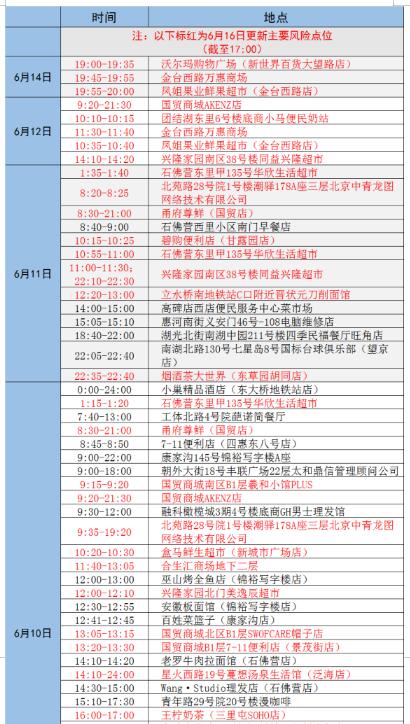 截至6月16日17:00北京朝阳区更新汇总主要风险点位见下图: