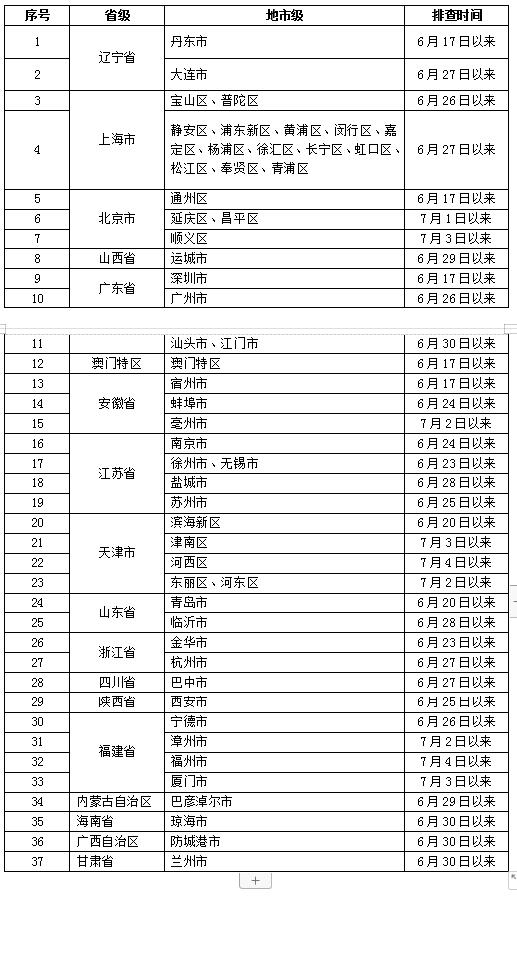 目前我市正在排查以下地区旅居史的来返庆人员,请尚未报备的人员立即报备。