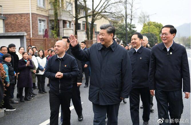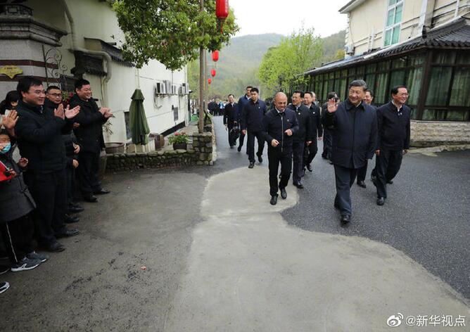 习近平总书记30日在浙江省安吉县天荒坪镇余村考察,同村民们亲切交谈,了解该村多年来践行“绿水青山就是金山银山”理念、推动绿色发展发生的巨大变化。随后,习近平前往安吉县社会矛盾纠纷调处化解中心调研,了解基层矛盾纠纷调解工作情况。(文字记者:张晓松、杨维汉、朱基钗 摄影记者:鞠鹏、申宏、燕雁)