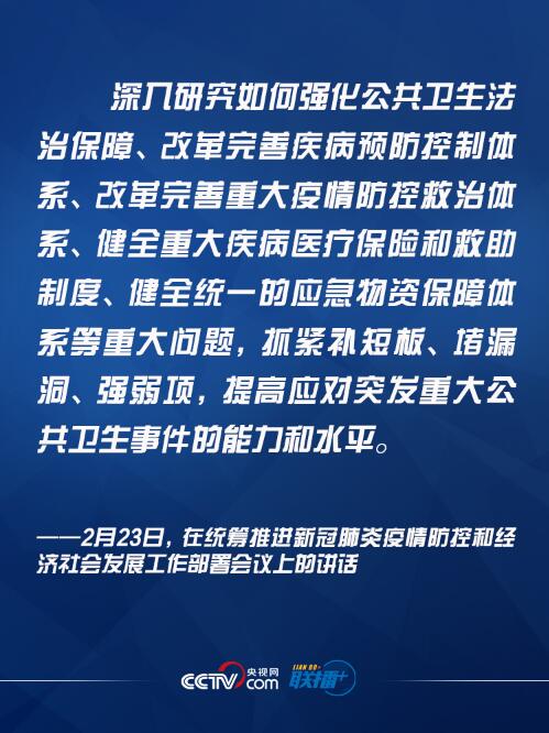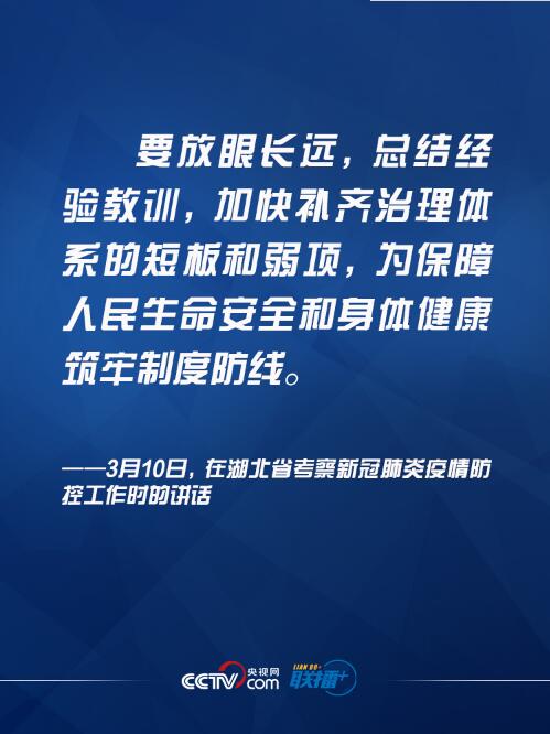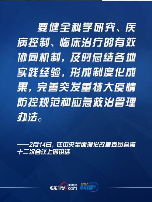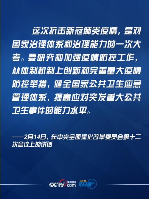 “发展环境越是严峻复杂,越要坚定不移深化改革,健全各方面制度,完善治理体系,促进制度建设和治理效能更好转化融合,善于运用制度优势应对风险挑战冲击。” 4月27日,习近平总书记在中央全面深化改革委员会第十三次会议上,深刻总结了党的领导和我国制度优势的根本作用,提出健全各方面制度、完善治理体系的明确要求。 小智治事,大智治制。这次新冠肺炎疫情防控,对我国治理体系和治理能力是一次大考。战“疫”以来,习近平既立足当前,又谋划长远,部署疫情防控同时,多次在发表重要讲话和考察调研时对健全各方面制度,完善治理体系进行部署。央视网《联播+》栏目特进行梳理,与您一起学习。