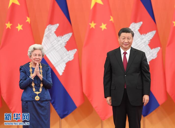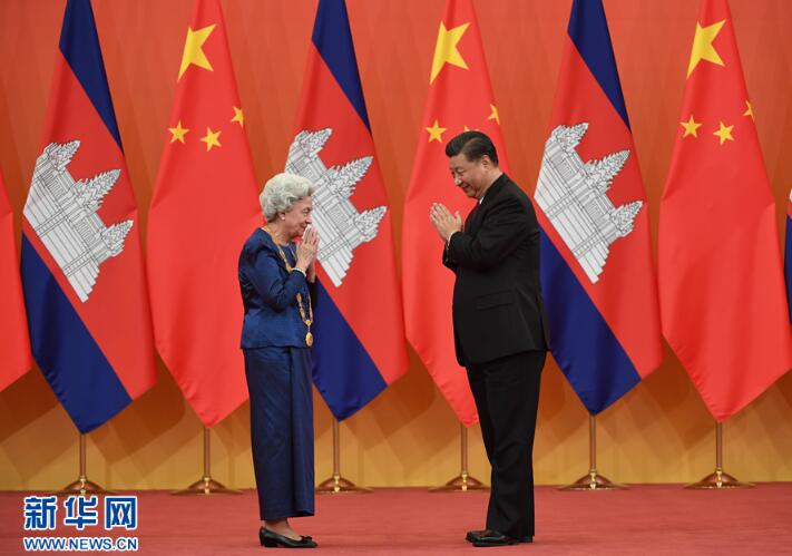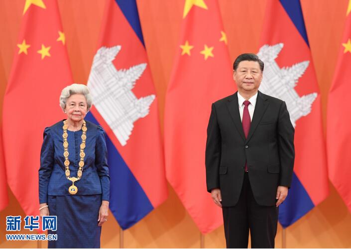 习近平为柬埔寨太后莫尼列举行中华人民共和国“友谊勋章”颁授仪式