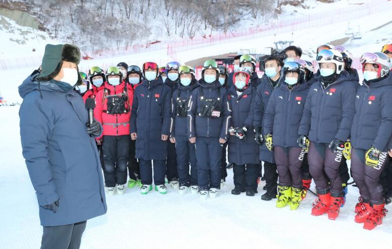 这是1月18日下午,习近平在位于北京市延庆区的国家高山滑雪中心,同赛场保障工作人员、运动员、教练员等亲切交流。新华社记者 鞠鹏 摄