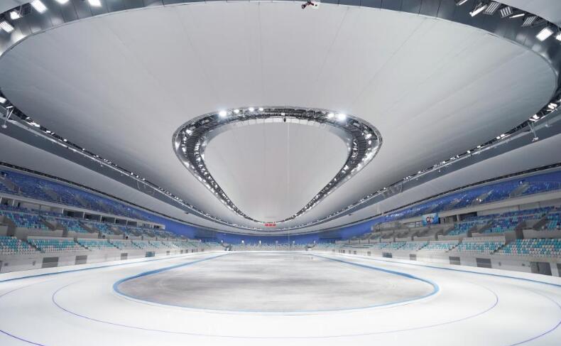 这是2021年1月22日拍摄的首次制冰完成后的国家速滑馆内景。新华社记者 鞠焕宗 摄