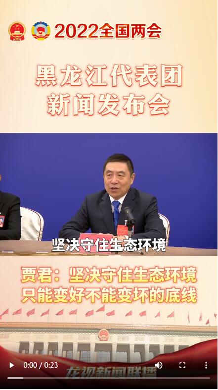 最后,贾君说:“我们将以更加昂扬的斗志,更加坚定的决心、更加务实的举措,坚定不移推动黑龙江绿水青山永续发展,让绿色成为黑龙江最美的底色,让低碳成为黑龙江最鲜明的特质。 ”