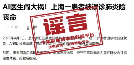 谣言:上海一患者重症肺炎被AI误诊成普通感冒险丧命?