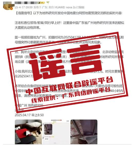 真相:4月17日上午9时,一位新浪微博认证为“科学科普博主”、IP属地显示在广东的网民发文称:“根据动物行为异常、地磁波动、经验数据分析等,判断将在48小时内发生6级以上强震”,引发关注。对此,4月17日晚,广州市地震局表示,动物异常行为与地震无必然因果关系。18日,广州市应急管理局回应,目前,广州市地震活动基本正常,地球物理观测没有显著变化。动物异常的因素多种多样,宏观动物异常与地震发生没有一一对应的关系。此外,根据现今地震预测的实际水平,很难做到非常精确地对地震时、空、强度的预测,所谓精准的“地震预测”是不可信的,也是多年反复在各地出现的地震谣言,只不过换成了当地的地名而已。在此郑重提醒大家:只有政府有权发布地震预报,其他任何部门、单位或个人都无权发布地震预报。因此切勿相信与地震有关的一切非官方信息,更勿传谣,不让谣言造成二次伤害。(来源:@应急管理部、“广东省互联网举报中心”微信公众号)