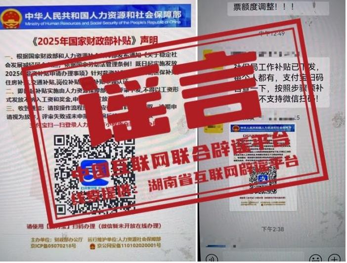 谣言:扫码可领取2025年国家财政部补贴?