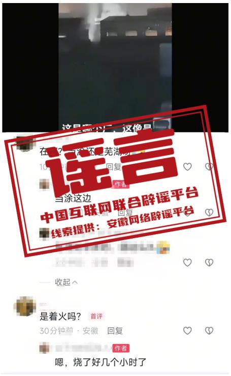 真相:近日,一网民在短视频平台发布视频配文“这是哪个厂,好像是着火啦”,并在评论区称“工厂在当涂、烧了好几个小时”等。经安徽省马鞍山市当涂经济开发区应急管理局和消防救援中心核实,当涂经济开发区境内没有发生火情火灾,该视频为虚假信息。(来源:“安徽省互联网违法和不良信息举报”微信公众号)