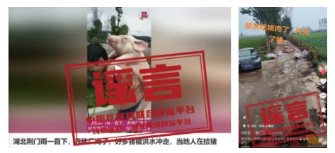 真相:近日,部分网络自媒体账号发布含有“荆门某地因连续下雨,导致养猪场被淹”以及“当地人捡猪”等内容的视频。经核查,该视频实为部分账号采用“移花接木”“拼接画面”等造谣方式,翻炒2021年某地区养猪场的旧闻,并非发生于湖北省荆门市。