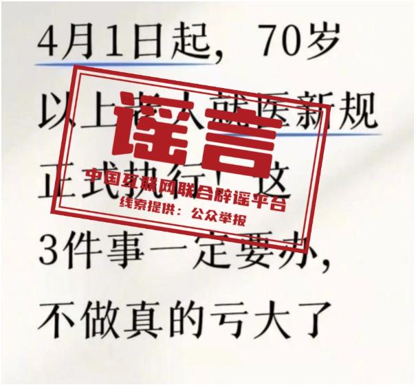 网传“70岁老人就医新规”不实(2026·03·31)