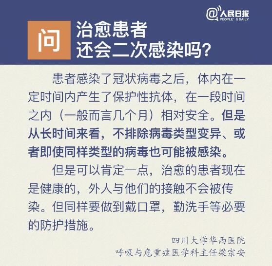 治愈患者还会二次感染吗? 四川大学华西医院呼吸与危重症医学科主任 梁宗安 这样说: