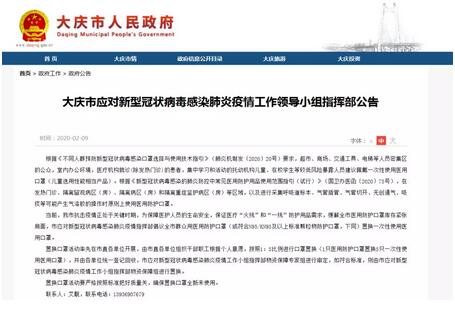 大庆市应对新型冠状病毒感染肺炎疫情工作领导小组指挥部办公室