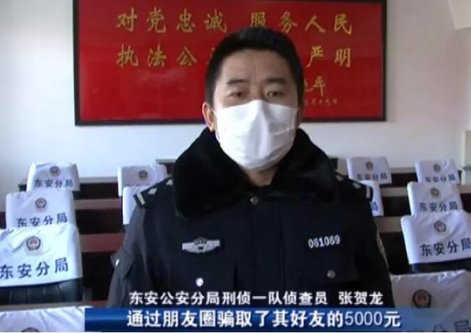 东安公安分局刑侦一队侦查员 张贺龙:“经过审讯王某根本没有购买口罩的渠道和来源,他就是利用广大市民急需口罩的这个心理,通过朋友圈骗取了其好友的5000元,获得钱财之后,他将这5000块钱挥霍一空,用于购买手机等个人物品。”